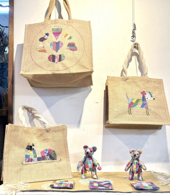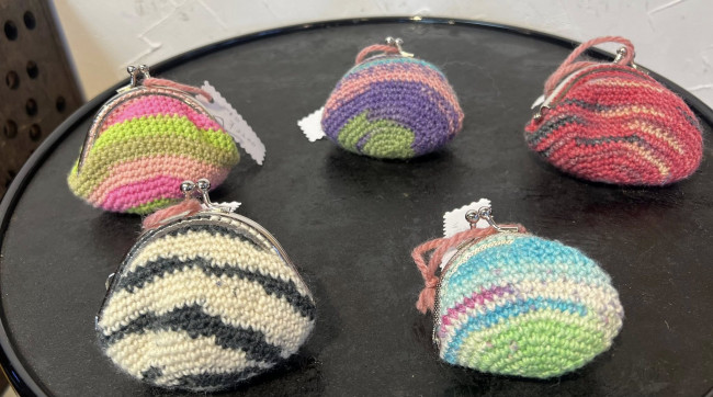 ダーニングを施した可愛い小物やカラフルなニット小物、いっぱいです。